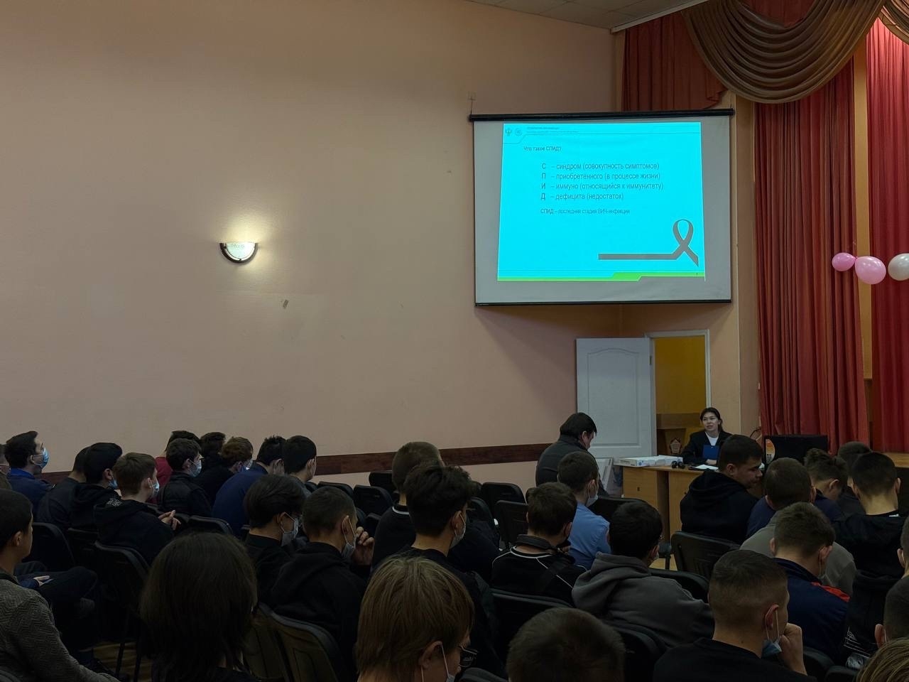 Врачи ФБУЗ «Центра гигиены и эпидемиологии в Забайкальском крае» Марина Крюкова, Анастасия Казанцева и Денис Игнатьев рассказали студентам о путях распространения ВИЧ-инфекции, о мерах ВИЧ безопасного поведения, о стадиях и симптомах заболевания. Студенты узнали, что ВИЧ-инфекция и СПИД – это не синонимы. В ходе беседы студенты задавали вопросы о методах и эффективности лечения заболевания, где можно получить консультацию и пройти обследование. На все вопросы студенты получили ответы специалистов. Для установления ВИЧ-статуса врачи рекомендовали студентам обратиться в Центр по профилактике и борьбе со СПИД, где обследование проводится бесплатно и в короткие сроки.